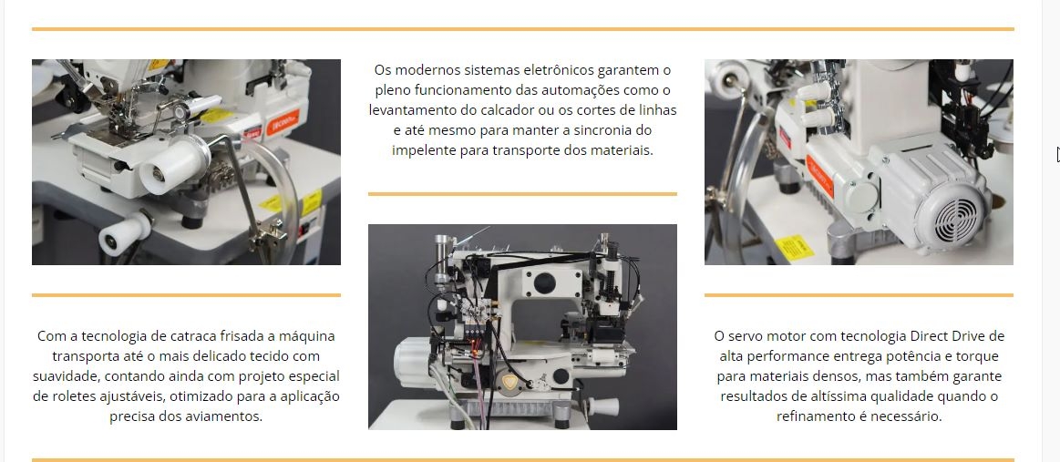 Conta com corte de linhas e subida do calcador automáticos, tem construção robusta e otimizada para adequar-se nas empresas de pequeno, médio e grande porte que buscam por mais qualidade nas finalizações mantendo a agilidade da produção.