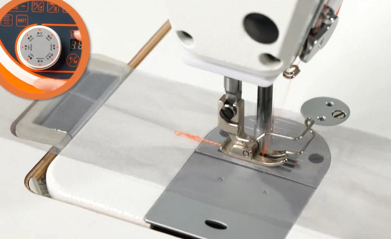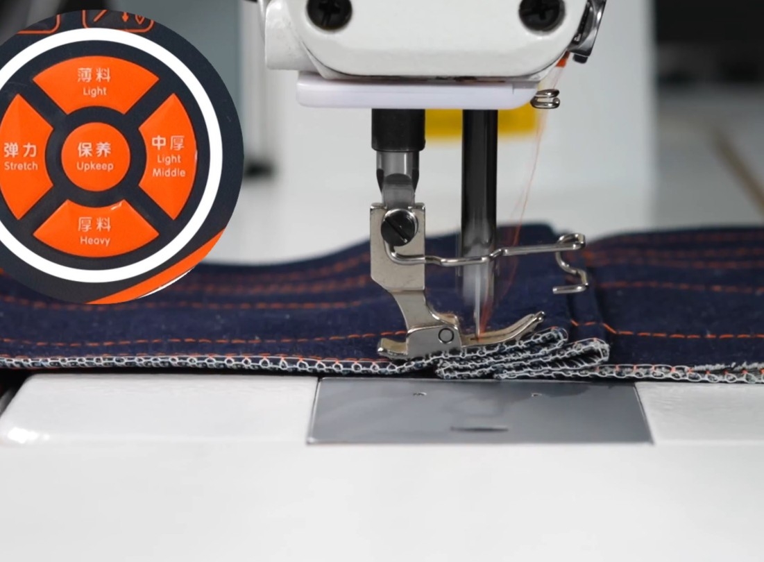 Esta máquina possui um design de botão exclusivo, que permite o ajuste rápido do modo de costura girando o botão. Isso maximiza o desempenho da máquina e a adapta facilmente a diversos tecidos, incluindo jeans, malha e tecidos elásticos, tornando-a adequada para costurar durante as quatro estações do ano.