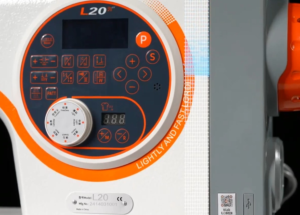 Esta máquina está equipada com uma interface USB, que pode ser usada para atualizar o programa de controle eletrônico através de um pen drive; também é uma ótima ferramenta para prolongar a duração da bateria de celulares e pode carregar ventiladores, tornando a costura mais confortável.