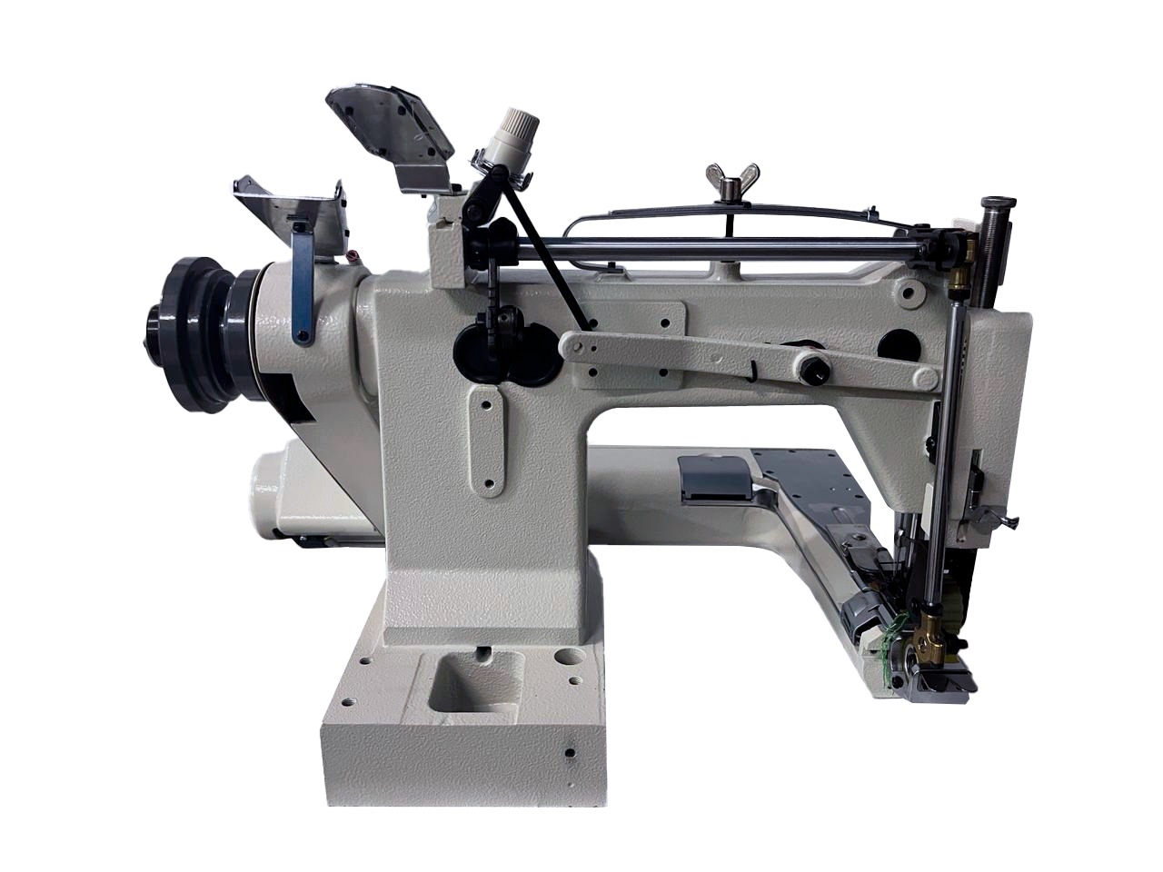 11 - Velocidade programável (a operadora ajusta a velocidade através de teclas no painel de comando) - as máquinas com motores convencionais são fabricadas para trabalhar na média de 5.000 RPM e para mudar a velocidade é necessária a troca da polia e reajuste da correia, o que demanda mais tempo.