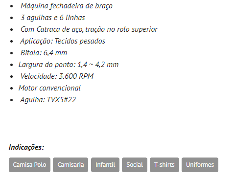 Fechadeira de Braço 3 agulhas, Ponto Corrente, com 2 catracas de Ferro, lubrificação automática e sistema de transporte rolamentado. Possui um conjunto de duas catracas de ferro para transportar materiais pesados. Ideal para costurar jeans e tecidos de grossa espessura.