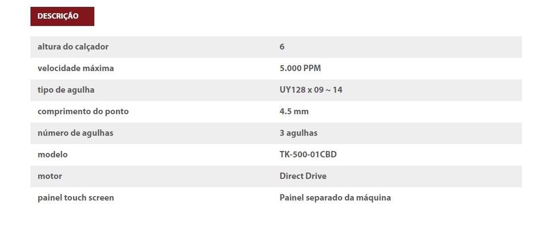 Altura do calcador: 5 mm