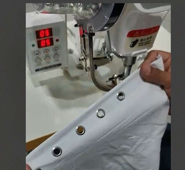 EX PARA APLICAR OS ILHOS TEM QUE FURAR O TECIDO ANTES DE APLICAR