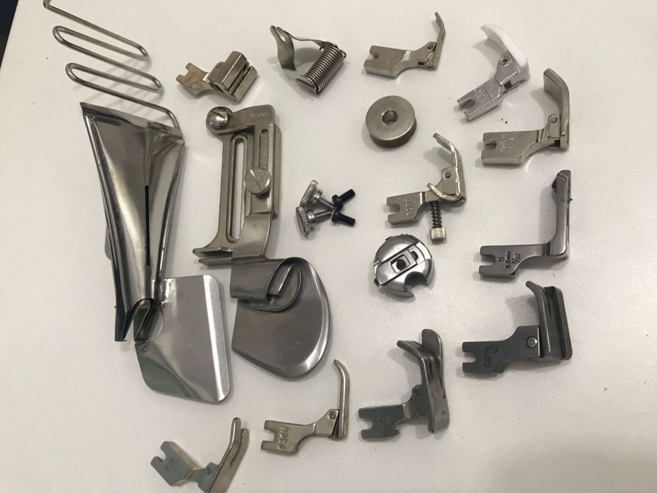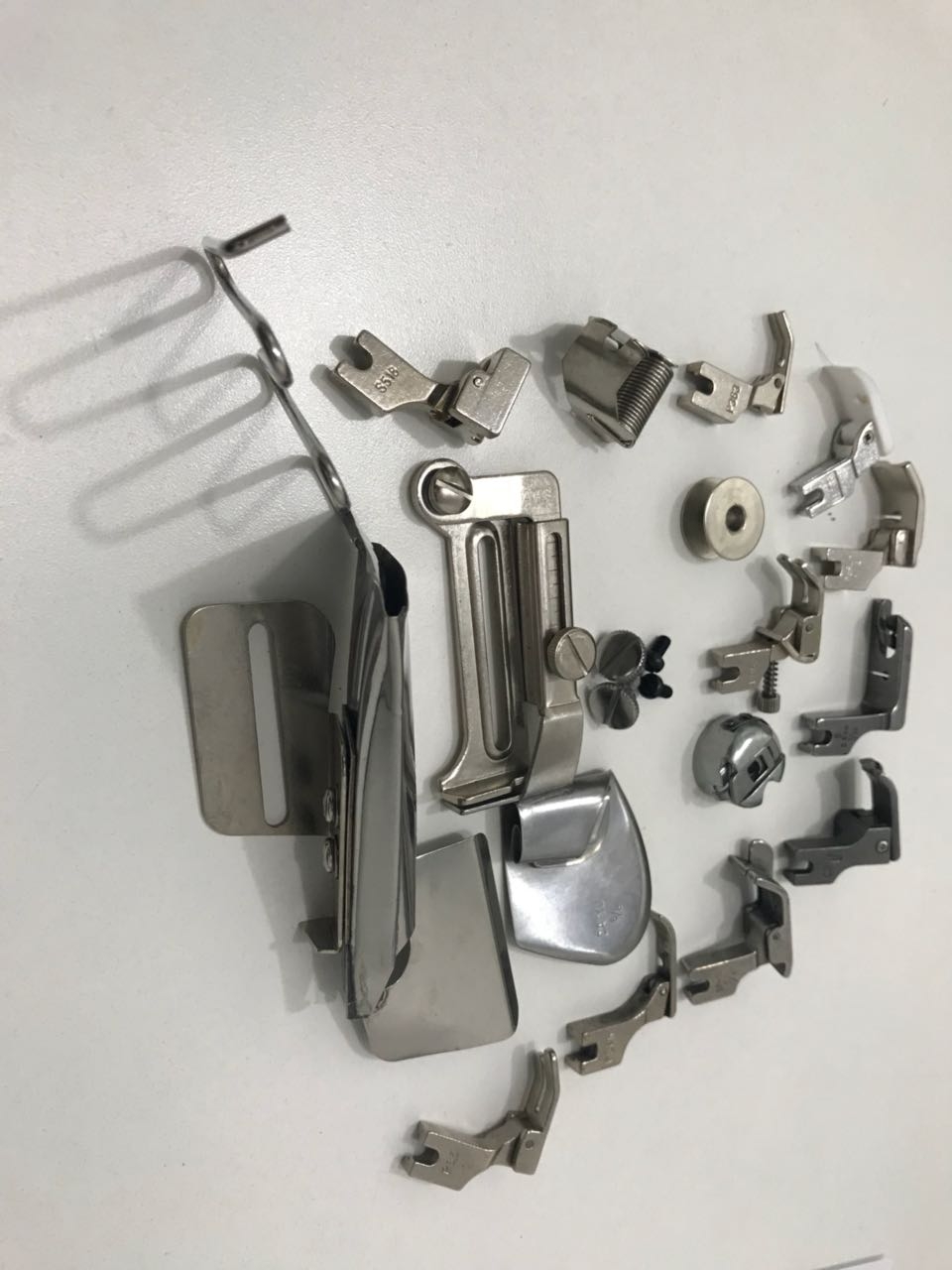 Eles são mais conhecidos como ''pézinho de máquina'', mas seu nome técnico chama-se ''pé calcador''. O pé calcador é encaixado na ''barra do pé calcador'', geralmente parafusado ou encaixado. Ele dá sustento ao tecido no momento da costura e também serve de guia para uma costura bem feita.