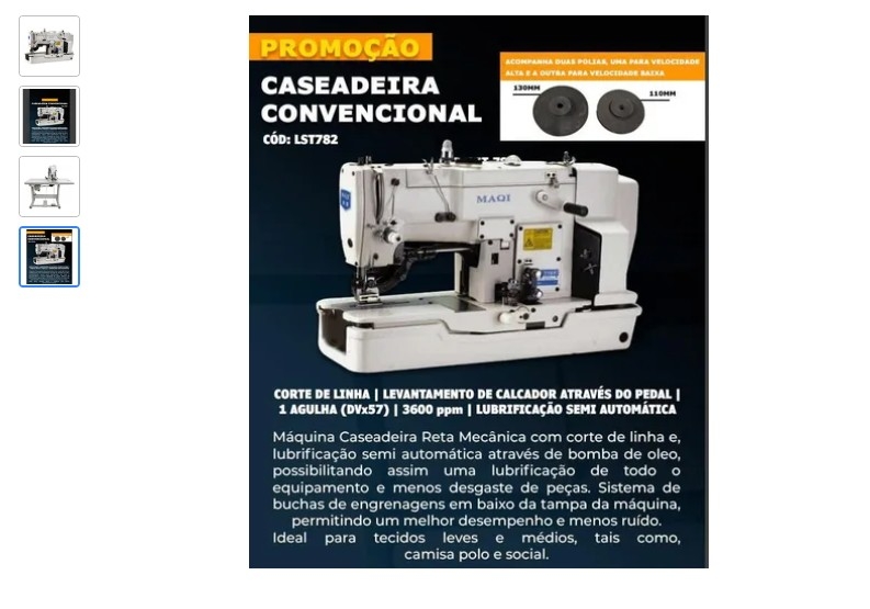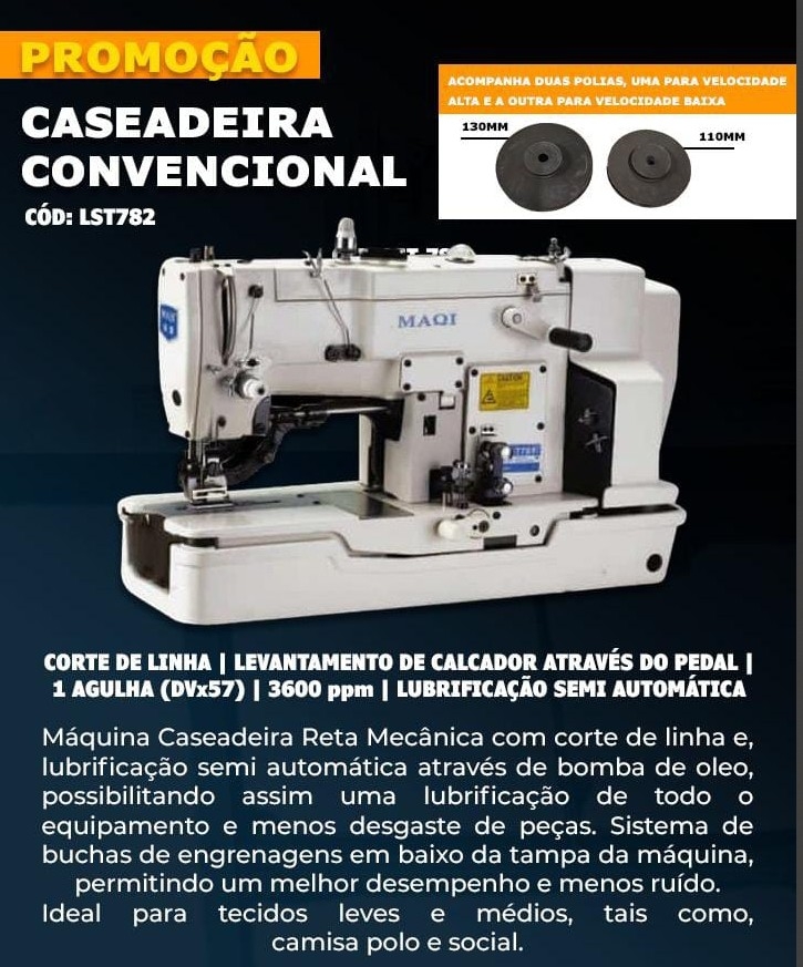 A máquina de costura industrial caseadeira 782 é uma máquina mecânica com 1 agulha e 1 linha com corte de linha automático, ideal para casear camisas sociais, polo, pijamas, cuecas, roupas profissionais, etc. A máquina de costura industrial caseadeira 782 permite realizar costuras de até 3.300 pontos por minuto e conta com um motor de 2 polos com chave seletora de voltagem. A máquina de costura industrial Caseadeira 782 conta com o selo de aprovação e certificação NR-12, o que garante segurança ao operador e ao ambiente de trabalho.