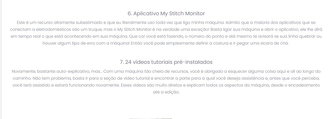 - Biblioteca de Tutoriais integrados: Os tutoriais em HD da PR680W facilitam o aprendizado! Veja 24 vídeos tutoriais diretamente na tela LCD de alta definição – com tudo, desde operações básicas até funções de bordado.