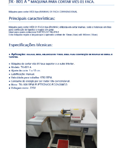 Máquina para cortar VIÉS tipo (RAINHA) 01 FACA CONVENCIONAL.