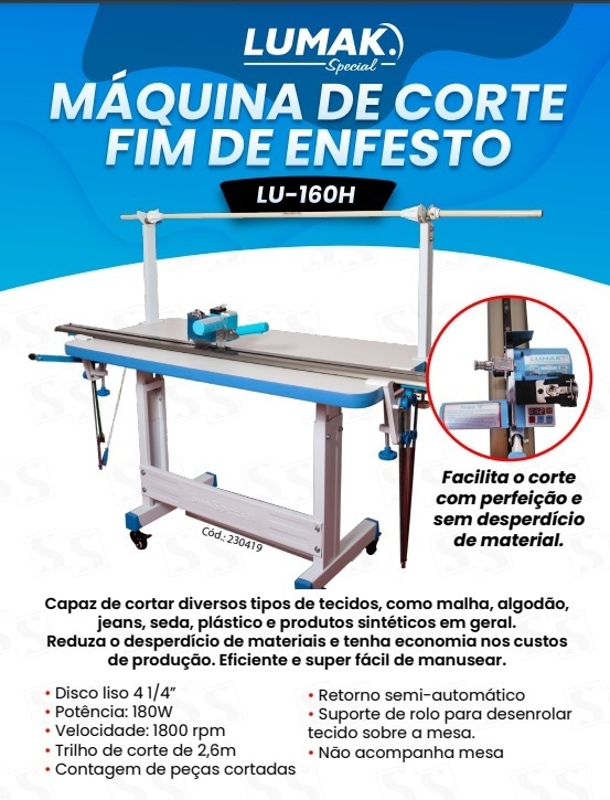 Máquina de Corte Fim de Enfesto 2,60M Digital LU-160H 220V - Lumak