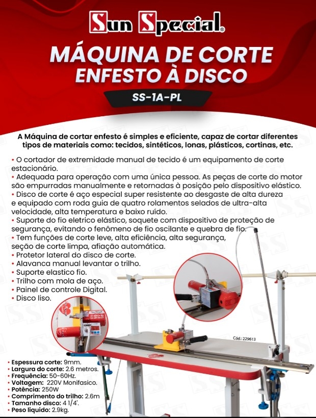 Máquina Corte Fim de Enfesto SS-1A-PL 220V 250W - Sun Special