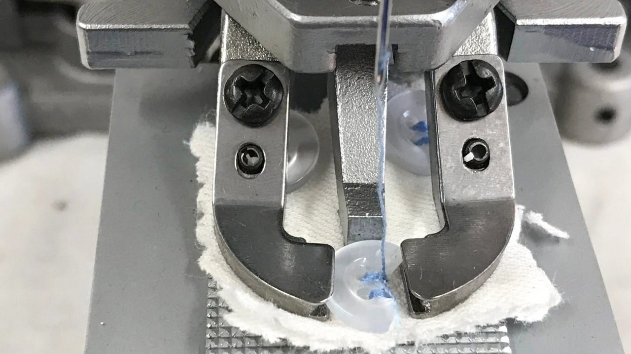 Máquina Botoneira direct drive com corte de linha, Ideal para pregar botões de 2 e 4 furos em camisas, polos, blusas, calças, saias, etc. permite também pregar lacinhos e etiquetas metálicas. Sistema controle de velocidade podendo escolher mudar o número de pontos a ser usado em cada tipo de botão através do painel de controle, levantamento do calcador por solenóide.