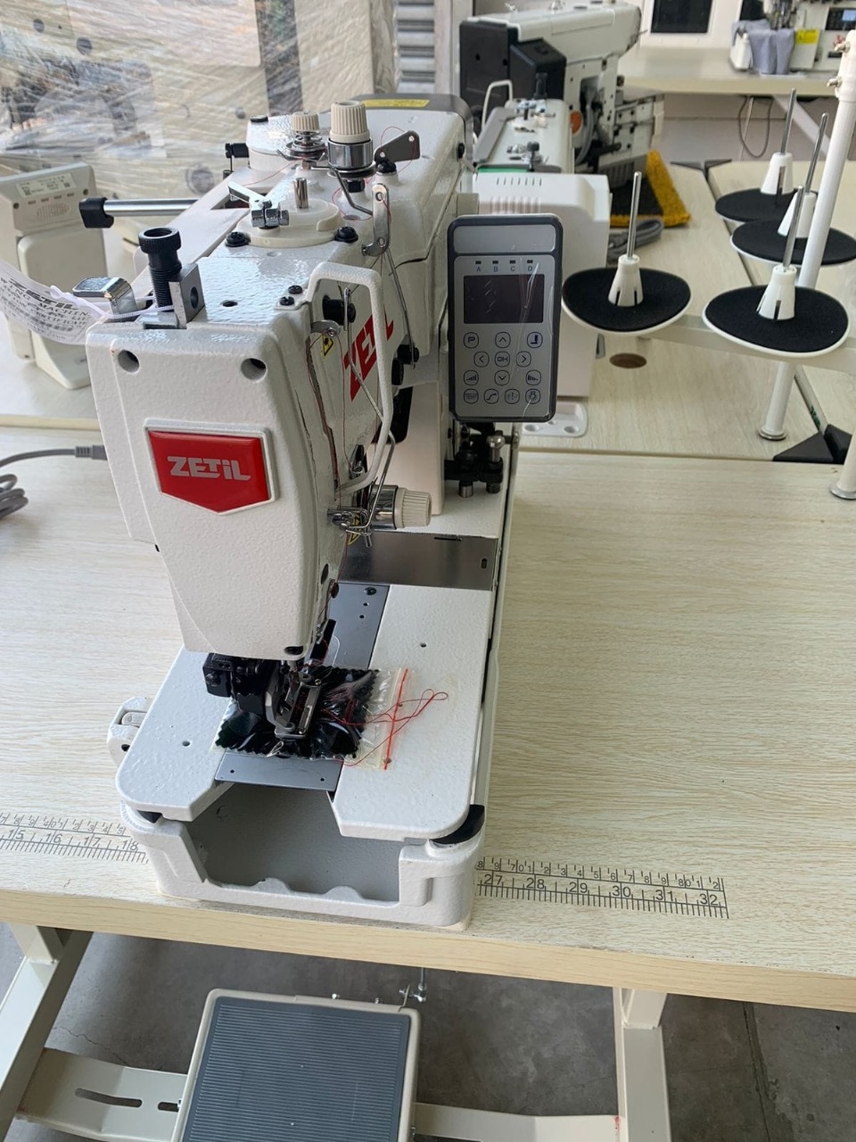 11 - Velocidade programável (a operadora ajusta a velocidade através de teclas no painel de comando) - as máquinas com motores convencionais são fabricadas para trabalhar na média de 5.000 RPM e para mudar a velocidade é necessária a troca da polia e reajuste da correia, o que demanda mais tempo.