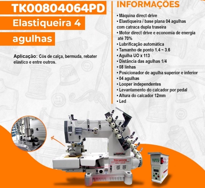 Máquina De Costura Elastiqueira 4 Agulhas Direct Drive - Techook TK00804064PD