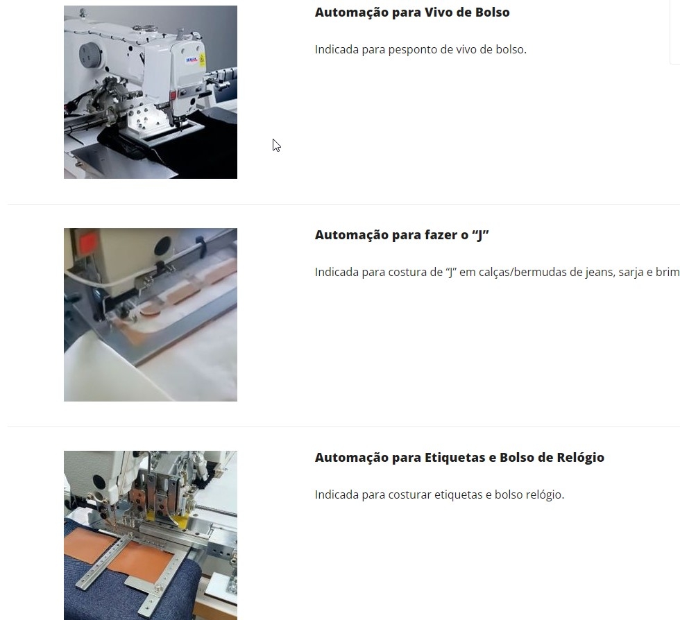 Automação personalizada para costurar Bolso relógio, etiquetas, velcros, bolso polo, J do Jeans, e diversas outras opções.