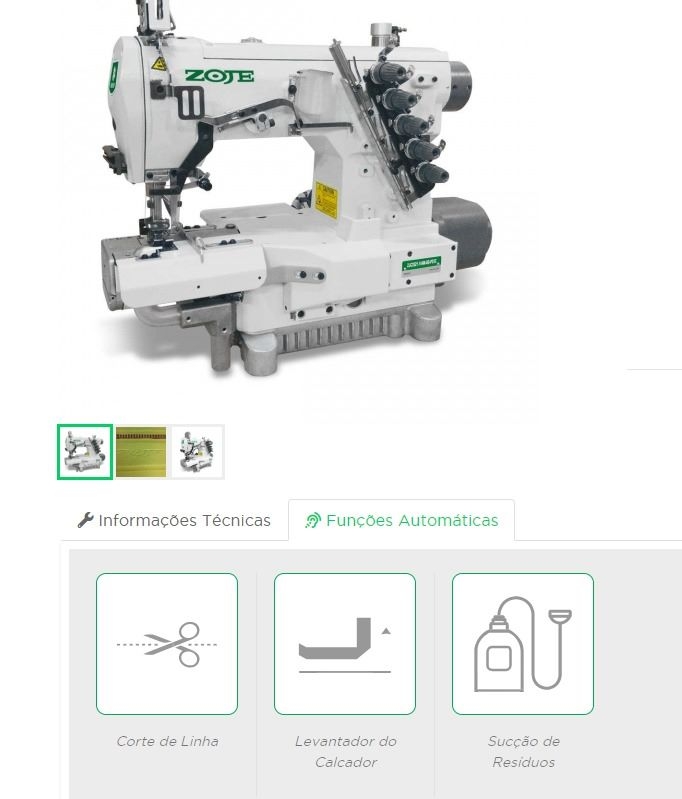 Máquina de Costura Galoneira Cilíndrica Pneumática Eletrônica com Refilador e Sugador - Zoje ZJ-C2521-164M-BD-PD3C