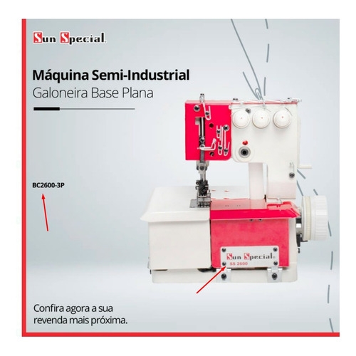 - Máquina de Costura Semi Industrial tipo Galoneira, modelo SS-2600-3 COM VERMELHA, é ideal para quem quer começar no ramo textil.