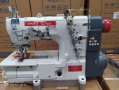 Máquina de Costura Galoneira plana de alta rotação com três agulhas, trançador superior e lubrificação automática, motor Silencioso Direct Drive