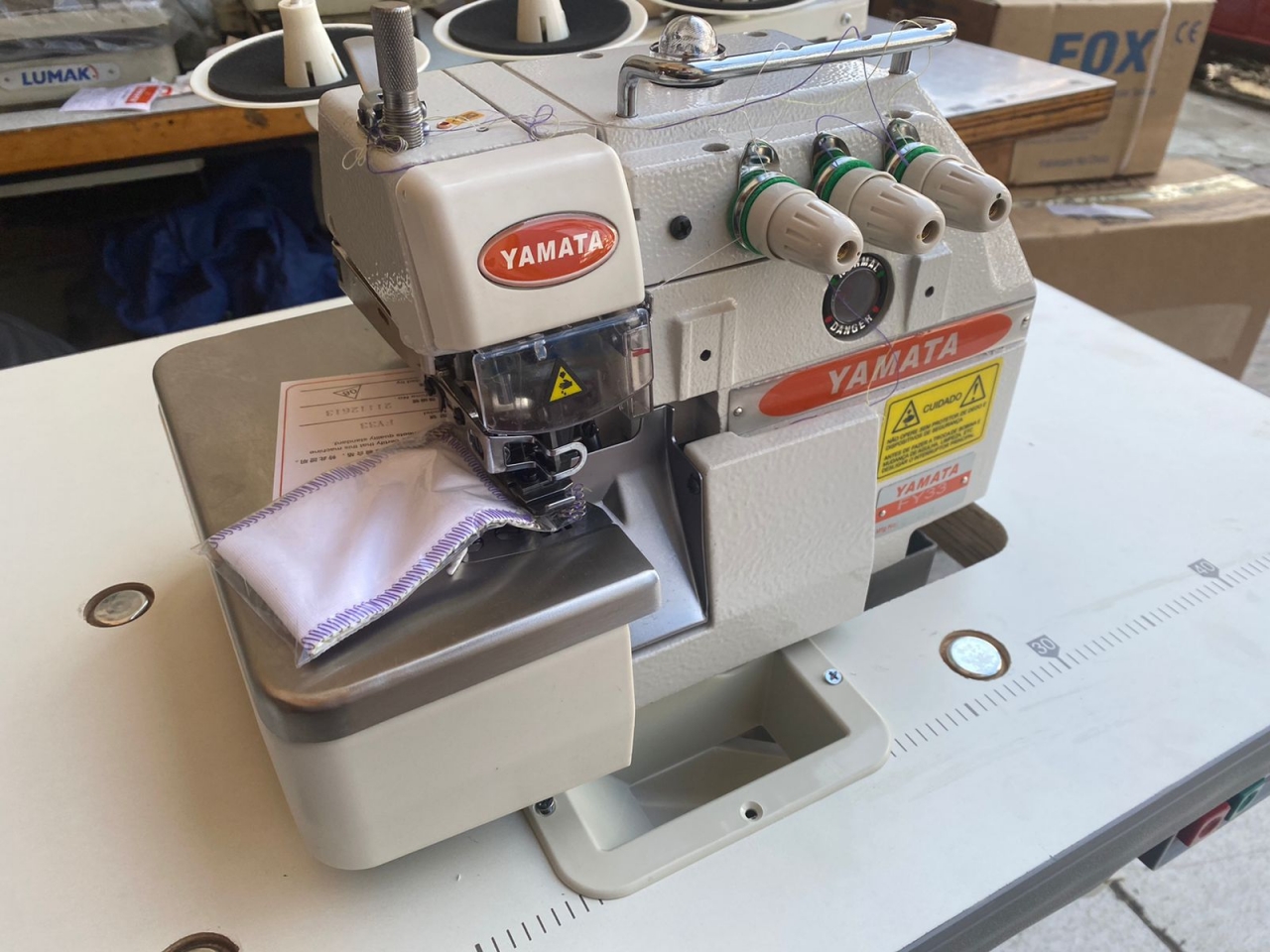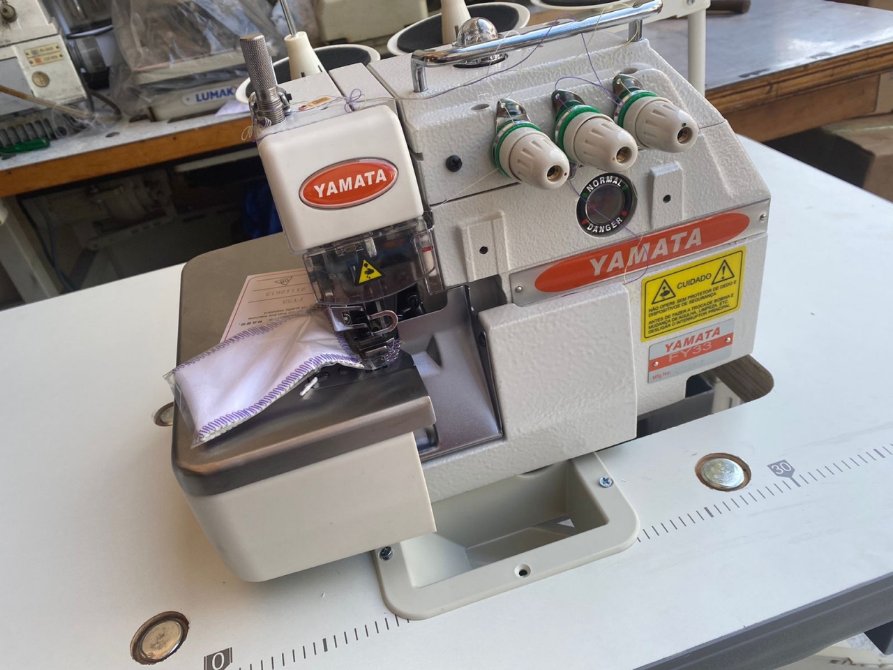 A máquina de costura industrial overloque Yamata FY33 é ideal para os prestadores de serviços ou confeccionistas que queiram conciliar praticidade, produtividade, qualidade e durabilidade. Próprias para confecção em tecidos planos e de malhas, nas etapas de preparação ou acabamento das peças. Aplicáveis para vários segmentos da costura em roupas, tais como: profissionais, lingerie, moda praia, modinha, moletons, camisas, calças, camisetas, saias, shorts, etc. Overloque de uma agulha, três fios, alta rotação, lubrificação automática, cárter blindado com menor ruído e menor vibração e mecanismo rolamentado. Ideal para tecidos leves, médios e pesados. Usada na união de tecidos e decorações em malha. O sistema de lubrificação permite lubrificar com mais precisão, evitando desgaste e super aquecimento nas peças. Consequência: aumento da vida útil da máquina. As tampas laterais e frontais recebem juntas uma cola especial que permite a vedação perfeita do sistema de lubrificação, evitando assim, possível vazamento de óleo e manchas nos tecidos. O Carter é revestido por um material impermeável que evita qualquer tipo de vazamento de óleo. Tipo de agulha: DCX27 Velocidade máxima: 6500 rpm Largura do chuleado: 4 mm Tamanho do ponto: 0,5 a 5,3 mm ESPECIFICAÇÃO: Agulhas: 1 Modelo da Agulha DCx27 Tipo de Motor: Convencional ou econômico Tamanho do Ponto: 0 - 5mm Luper: 2 Tipo de Lubrificação: Automática Transporte: Simples (Dente) Velocidade: 6000 PPM Voltagem: Bivolt chaveado (110V e 220V) Garantia: Garantia contra defeitos de fabricação e de assistência técnica por 365 dias, contra defeitos de funcionamento em condições normais de uso. O serviço de mão de obra dentro do prazo da garantia, só será gratuito se o cliente enviar ou trouxer o produto em nossa oficina. Produto Completo com Mesa e Motor A MONTAGEM É FEITA POR CONTA DO COMPRADOR !