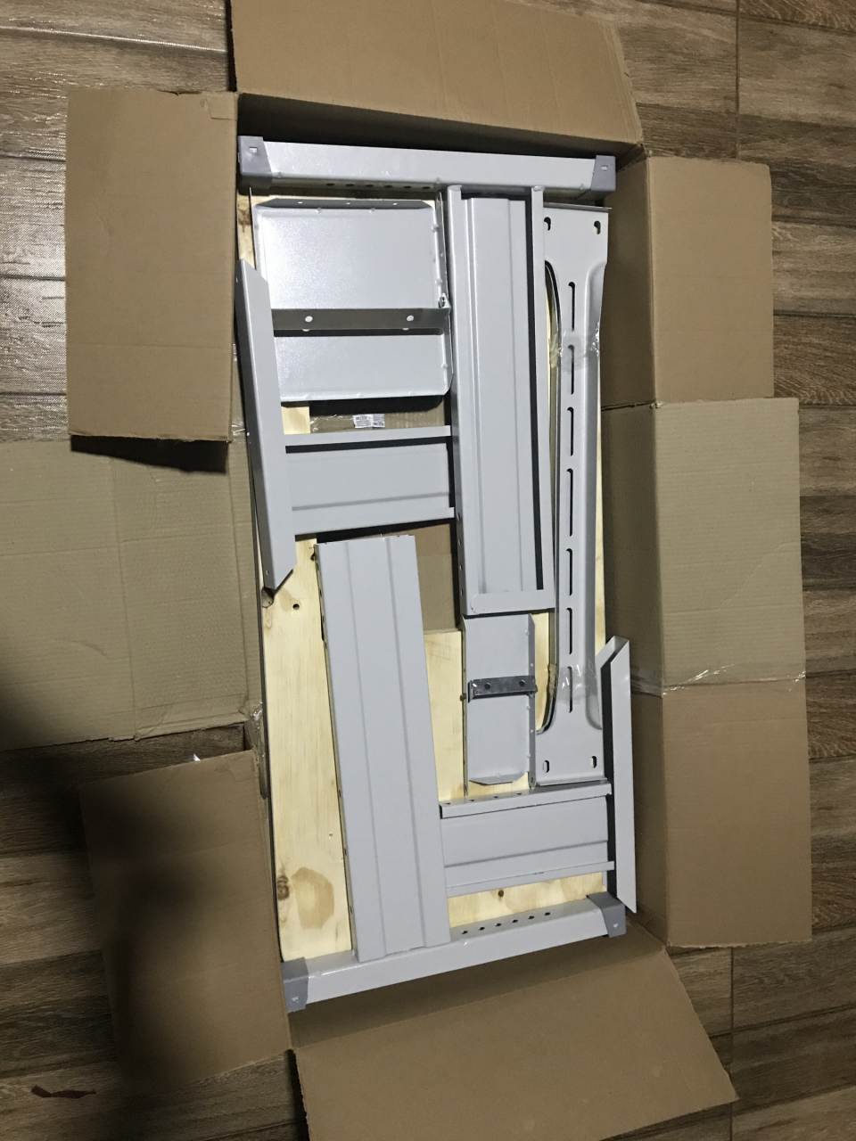 Estante Desmontada Composta Por: Tampo De Madeira Revestido Em Fórmica Impermeável, Pé De Ferro Pintado Por Imersão E Acessórios Para Manutenção.