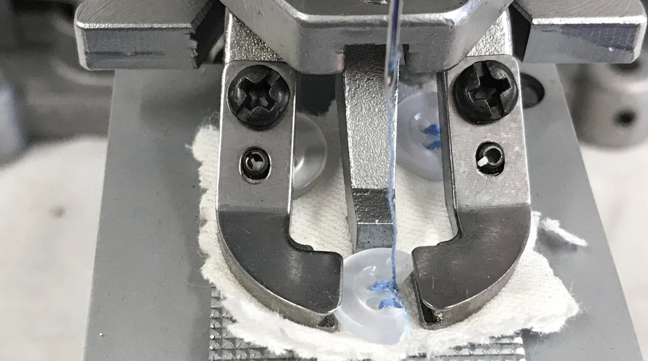 Máquina de costura industrial pregadeira de botões.