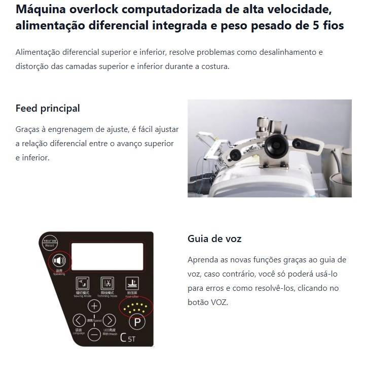 OVERLOQUE ELETRONICA, BASE PLANA, 2 AGULHAS, 4 FIOS, DIRECT DRIVE, NOVO DESIGN, PONTO CORRENTE, EQUIPADA COM
