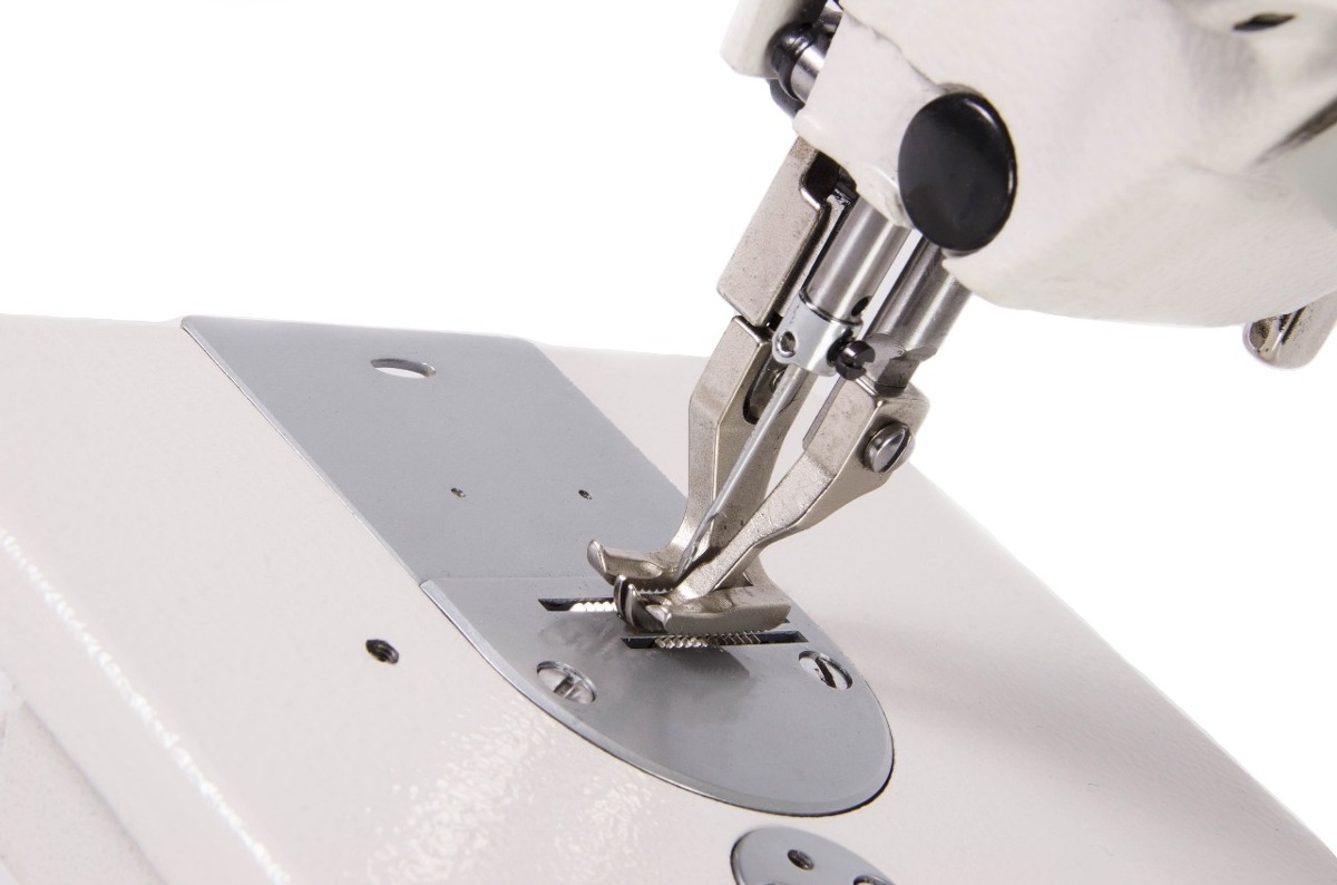 Máquina para costura Reta Transporte Duplo com motor direto no cabeçote da máquina.