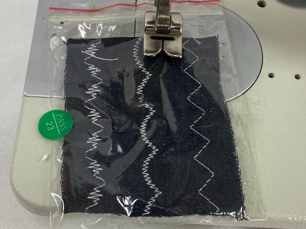 Máquina de costura industrial zigue-zague, direct drive. Aplicação para elástico, figuras, etc.