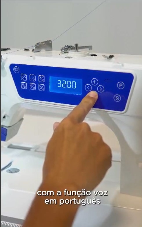 11 - Velocidade programável (a operadora ajusta a velocidade através de teclas no painel de comando) - as máquinas com motores convencionais são fabricadas para trabalhar na média de 5.000 RPM e para mudar a velocidade é necessária a troca da polia e reajuste da correia, o que demanda mais tempo.