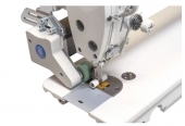 Máquina de costura industrial reta com refilador eletrônica para confecção de vestuário com tecidos médios.