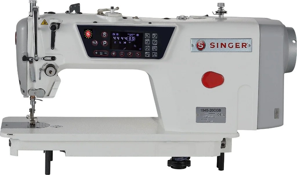 Máquina de Costura de Ponto Fixo Computadorizada com Motor de Acionamento Direto de Passo e Caixa de Controle Integrada.