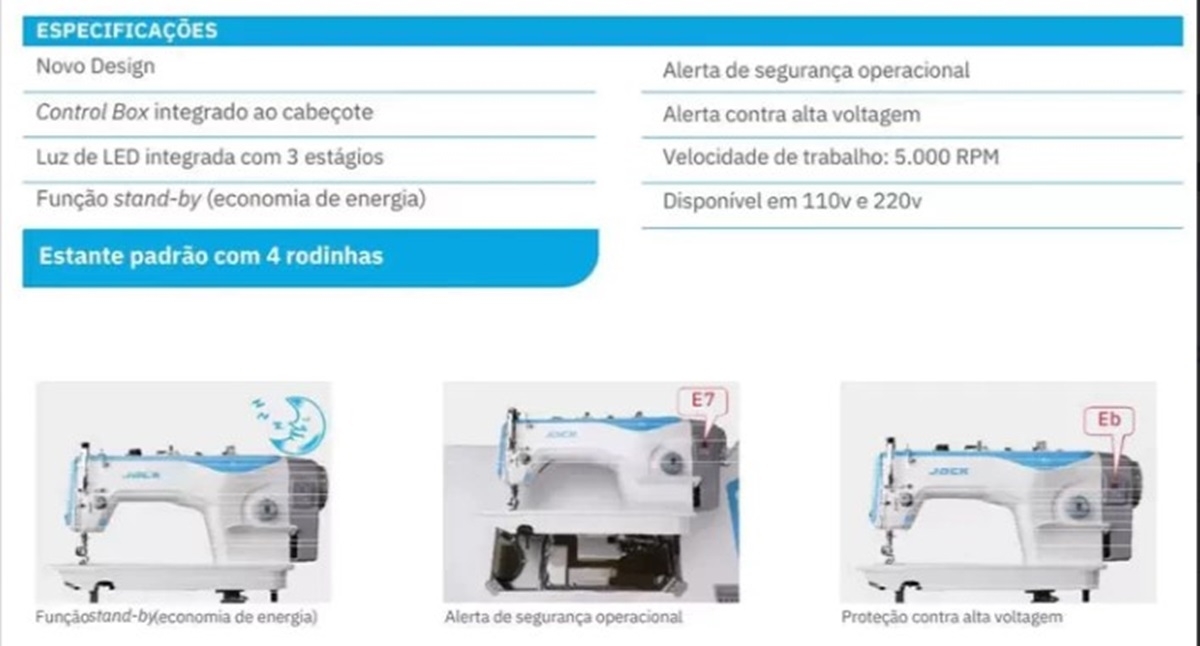 Máquina de Costura Reta Jack F5 Direct Drive (Substituiu a F4) Design mais moderno.