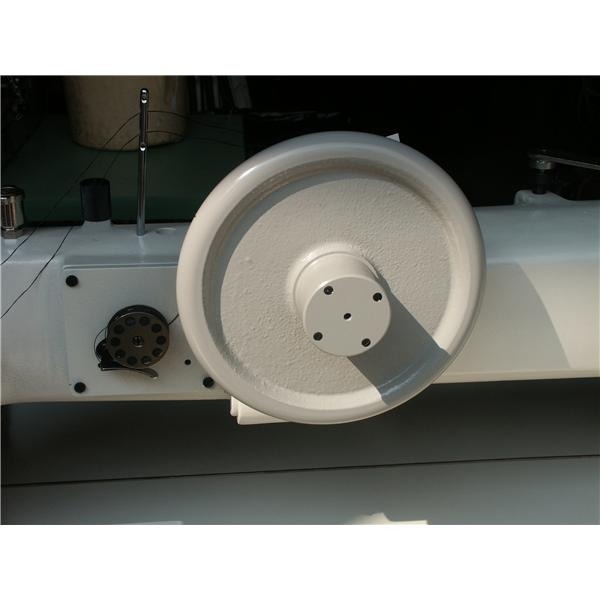 Há um volante auxiliar no meio do cabeçote para que o operador possa realmente alcançá-lo quando estiver trabalhando próximo à agulha. Seu mecanismo de alimentação uníssono permite uma alimentação de material suave e estável. Uma bobina grande para uma máquina grande faz sentido. A bobina tem o dobro da capacidade de uma bobina normal - como você pode esperar. O enrolador de bobina é montado bem na frente da roda auxiliar para facilitar o acesso.