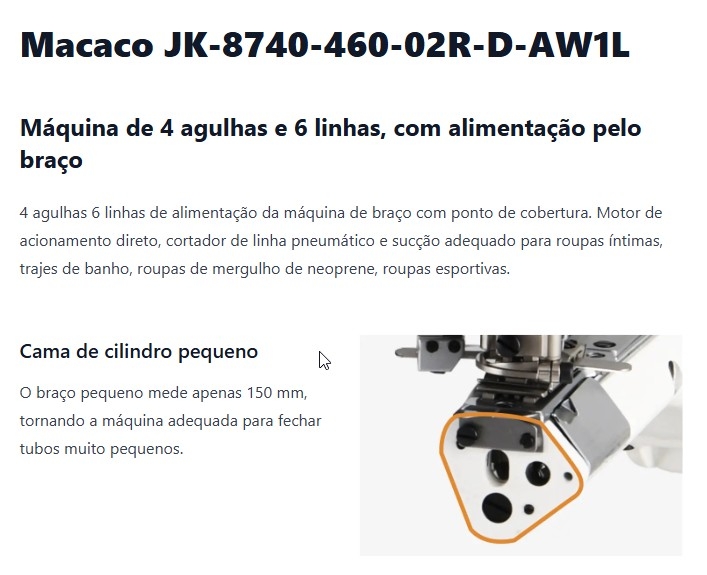 Maquina de Costura tipo Flat Seaming Direct Drive 4 agulhas- Jack JK-8740-460-02-UTL
