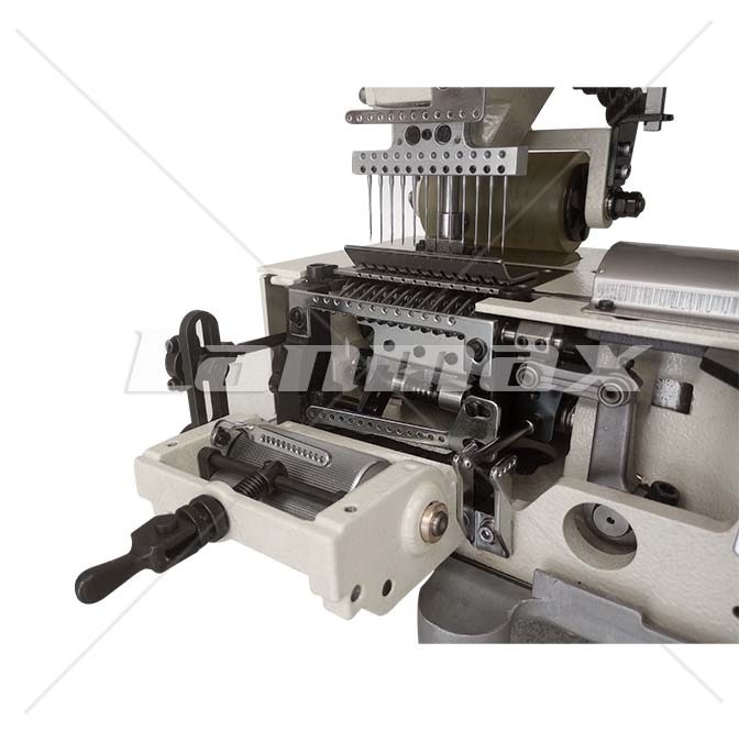 O ajuste dos loopers, protetores de agulha e guia de linha dos loopers é feito individualmente. Além disso, os loopers podem ser deslocados para fora da máquina, facilitando a passagem da linha.