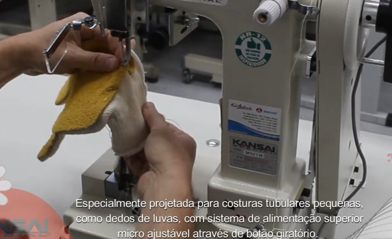 Máquina de luva ponto corrente, 1 agulha, com coluna ultra fina, alimentação superior micro ajustável por botão giratório. Para luvas em materiais médios e pesados. Projetada para costuras tubulares pequenas, como dedos de luvas, com sistema de alimentação superior micro ajustável através de botão giratório, sistema de captura da linha da agulha, que evita falha de pontos e looper especialmente criado para a operação, garantindo boa amarração e facilidade de passagem de linha. Para luvas em materiais médios e pesados. Ideal para fabricação de luvas de segurança (EPI).Máquina para luvas, com coluna ultra fina, de 1 agulha, ponto corrente.
