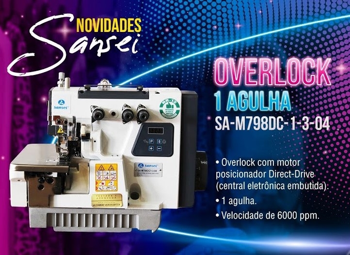 Overlock Sansei com motor posicionador, Direct-Drive (central eletrônica embutida).