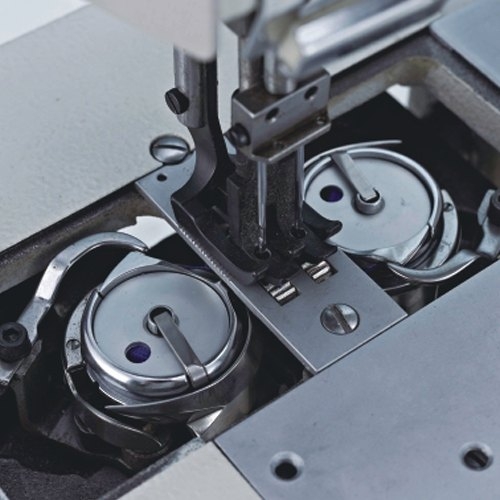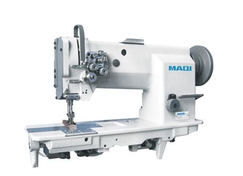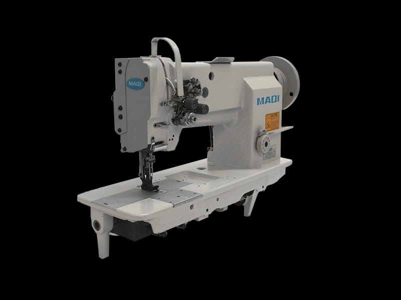Reta duas agulhas, transporte triplo (dente / agulha / calcador), lançadeira grande vertical e lubrificação automática. Utilizada na confecção de bolsas, cintos, carteiras, luvas, jaquetas, fichários, materiais de segurança e artigos em couro.Vantagens: A lançadeira vertical foi projetada para trabalhar com agulha e linha de espessura grossa, ideal para costurar materiais pesados e artigos em couro. Sua lançadeira grande tem a capacidade de armazenar até 50% a mais de linha do que uma lançadeira pequena. Seu sistema vertical permite que a regulagem mecânica e o encaixe da bobina sejam feitos com mais facilidade e rapidez.