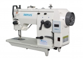 Costura reta industrial, - Transporte simples por dente impelente, - Uma agulha e dois fios, - Lançadeira pequena (padrão), - Lubrificação automática por bomba de óleo, - Motor Direct Drive diretamente acoplado ao eixo da máquina, - Posicionamento de agulha (em cima/embaixo), - Luz de led, - Saída de energia para cabo USB.