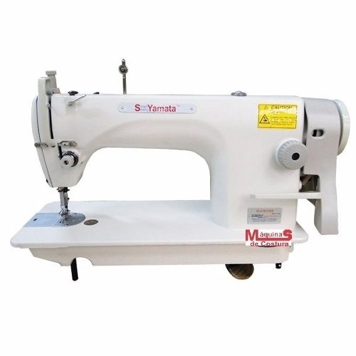 Máquina de costura Industrial Nova, Tipo Reta, Marca Yamata, uma agulha, 4500rpm, lubrificação automática, ponto até 5 mm, completa com conjunto de montagem composto por: tampo de madeira revestido em fórmica impermeável, estante de ferro, motor importado (silencioso)