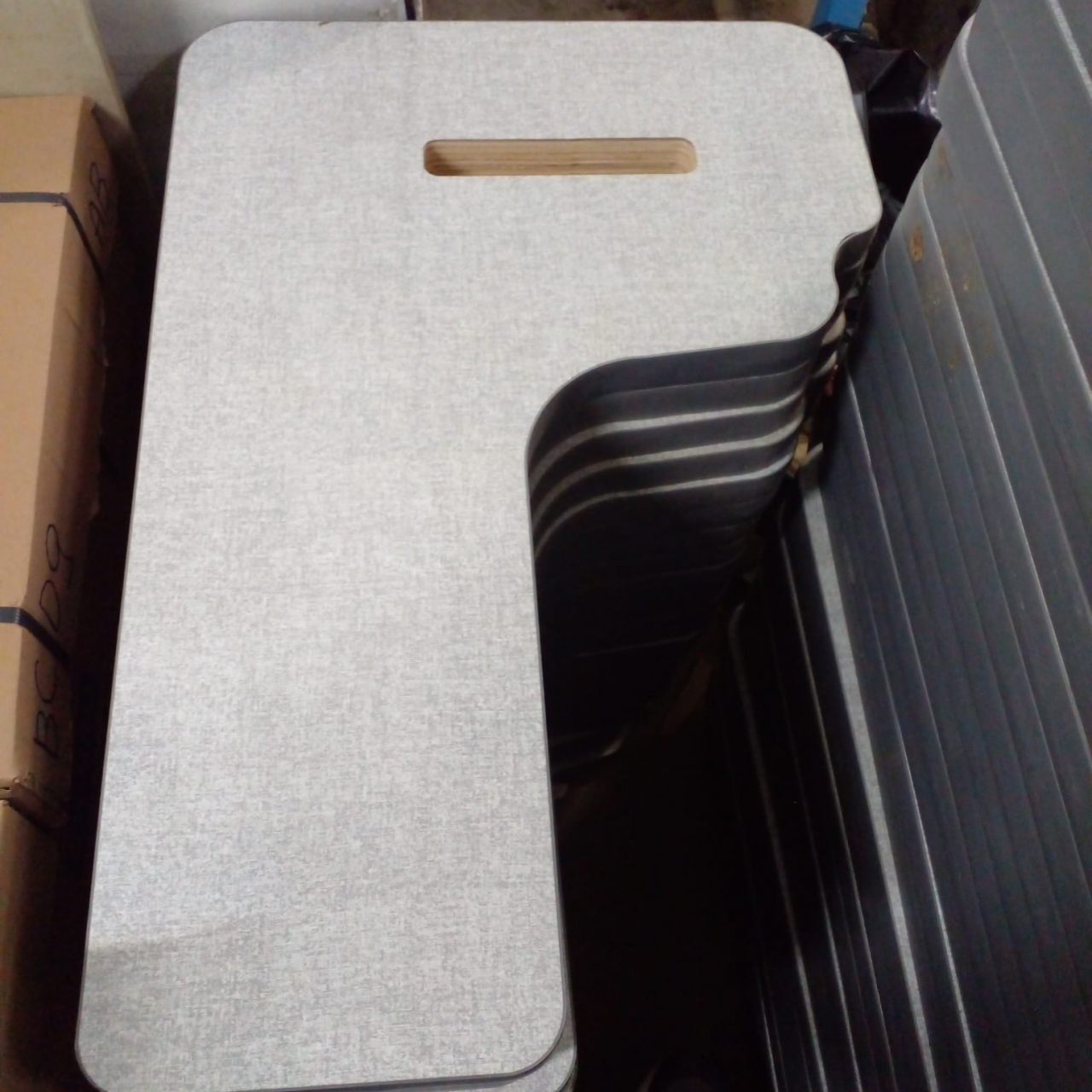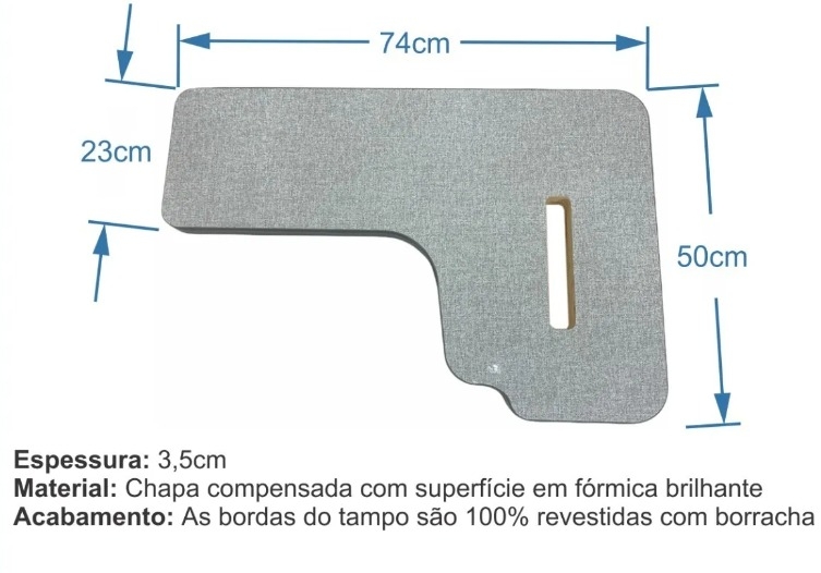 Material: Tampo de chapa de madeira reforçada com acabamento em fórmica