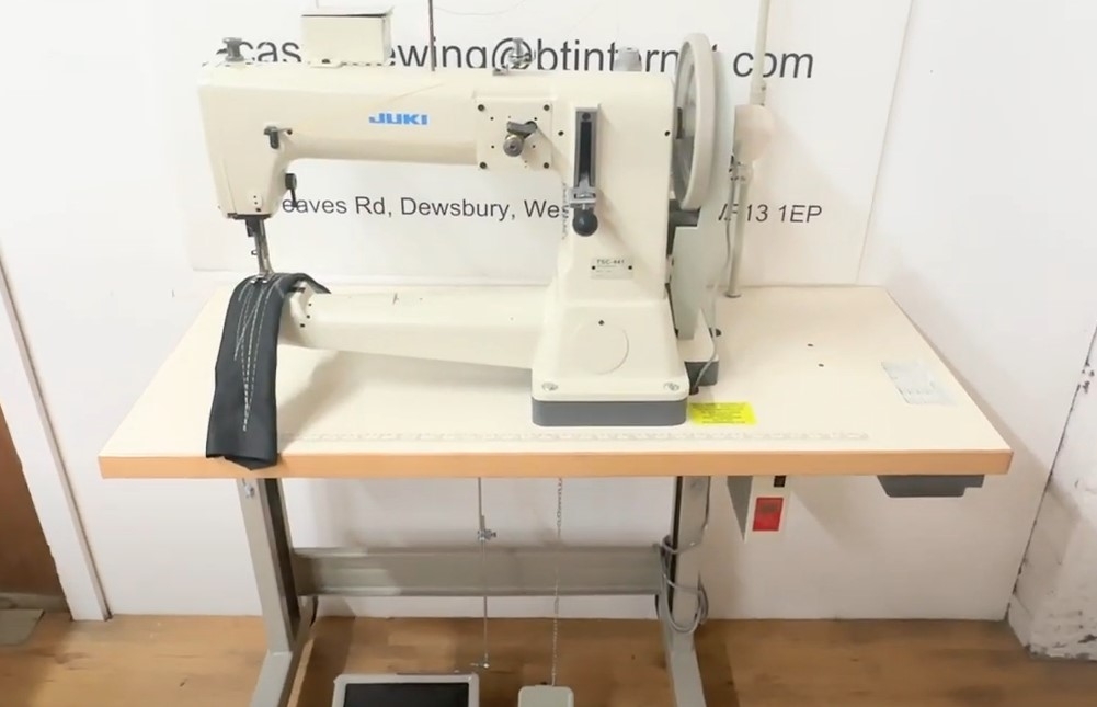 máquina de costura JUKI TSC-441 Japonesa, selaria de alta qualidade, máquina de costura - ombro, orla, barbante com gancho de cano. Triplo deslocamento. Imersão inferior, agulha superior e calcador Adequado para costurar materiais médios e grossos como couro, couro sintético e outros materiais técnicos