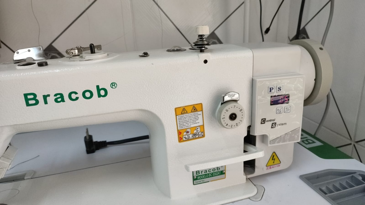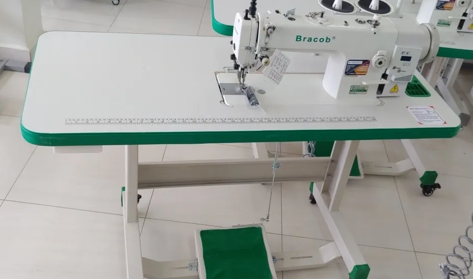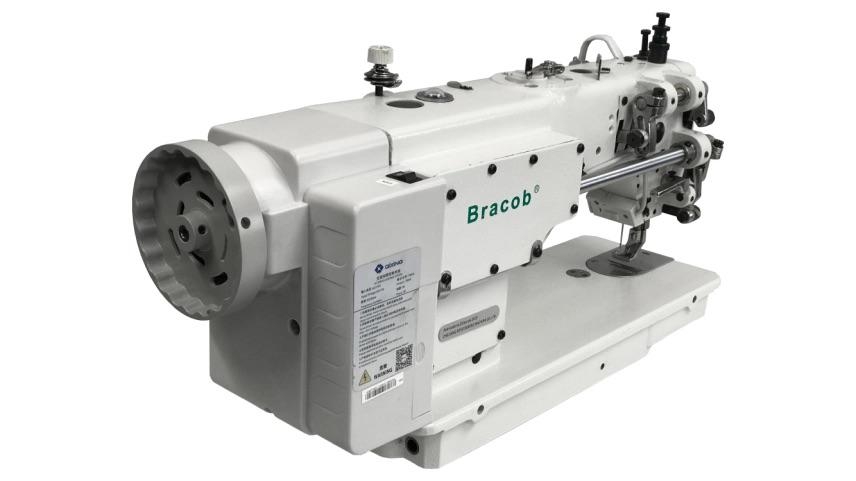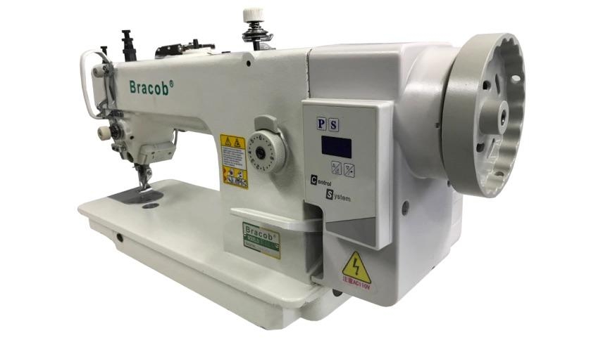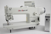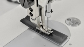 Máquina de costura industrial reta com transporte duplo (dente e calcador) direct drive. Aplicação para tecidos pesados (estofaria, jeans, etc).