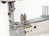 Máquina de braço Lançadeira grande triplo cilíndrica, possui sistema de transporte triplo que facilita costuras longas e colocação de fitas viés, trabalhos como bolsas, couro e sintéticos no geral entre outros, como acolchoados e fabricação de colchões.