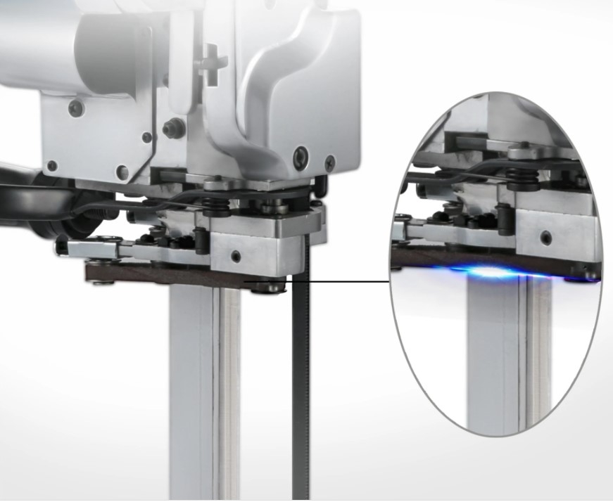 - Proteção frontal de aço contra acidentes, com regulagem de altura.