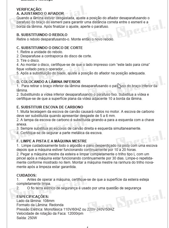 - Tem funções de corte leve, alta eficiência, alta segurança, seção de corte limpa, afiação automática.