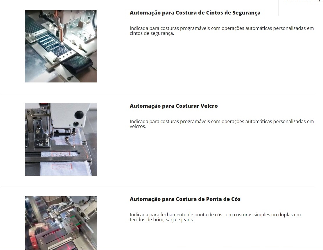 Máquina de Costura Programável com diversas automações, indicada para padronização das costuras, otimizando a qualidade do acabamento e aumentando a produtividade se comparado com o processo manual