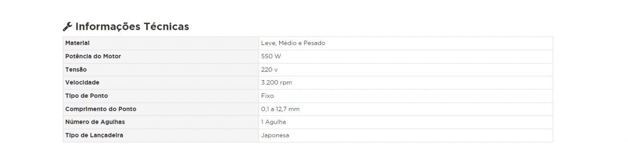 | Tipo de Lançadeira | Japonesa |