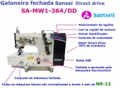 Galoneira de base plana, 03 agulhas e 05 linhas com lubrificação automática e motor servo eletrônico embutido no cabeçote.