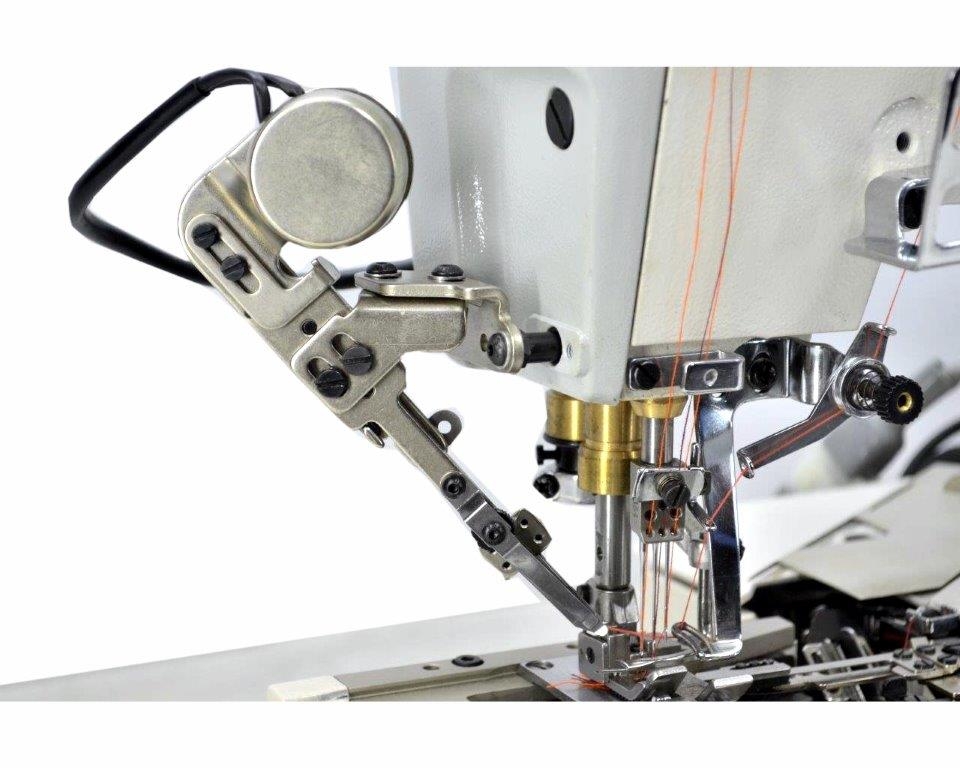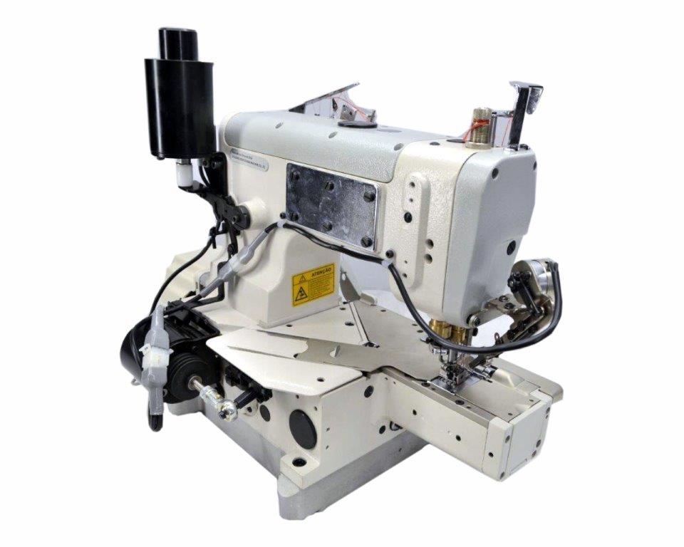 Máquina de costura industrial galoneira base cilíndrica com refilador. Aplicação para bainha.