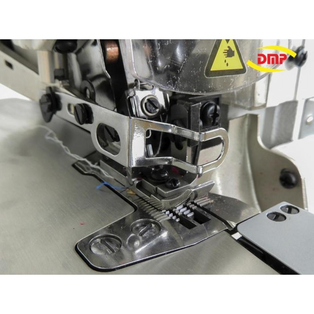 Equipada com dispositivo abridor de discos para liberar as linhas das agulhas quando a sapata é erguida.