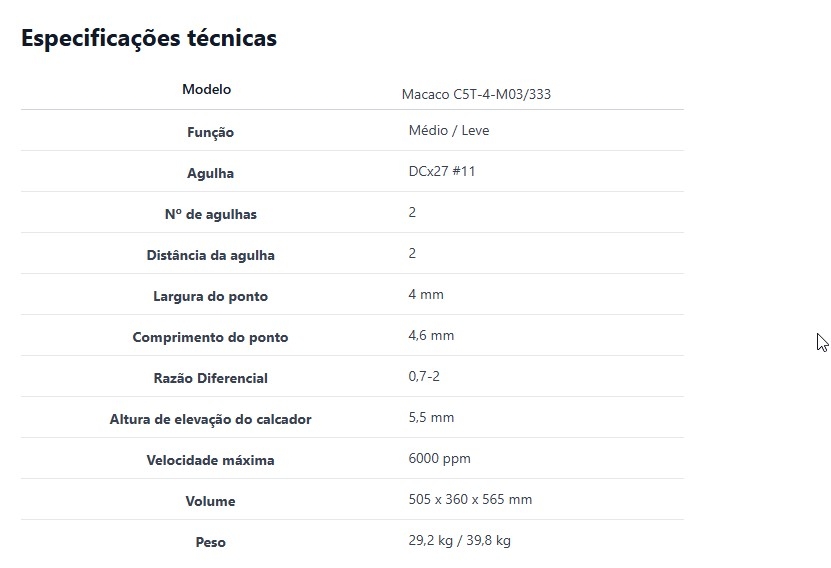 DE 4,0 MM, COMPRIMENTO DO PONTO ATE 4,6 MM, ELEVACAO DO CALCADOR ATE 5,5 MM, VELOCIDADE ATE 6000 PPM.
